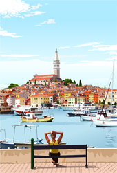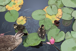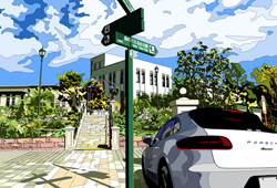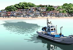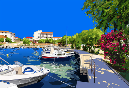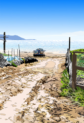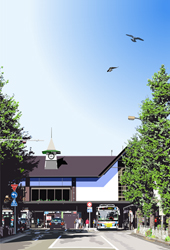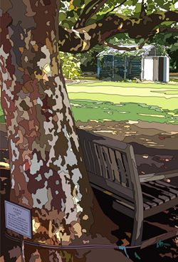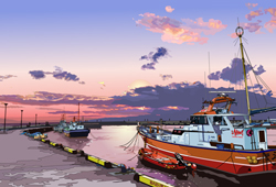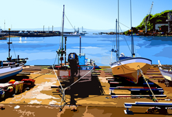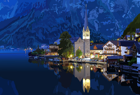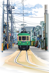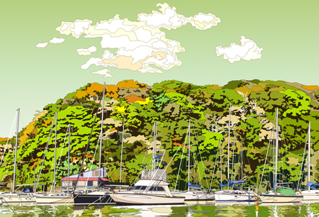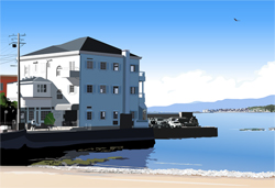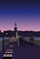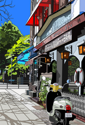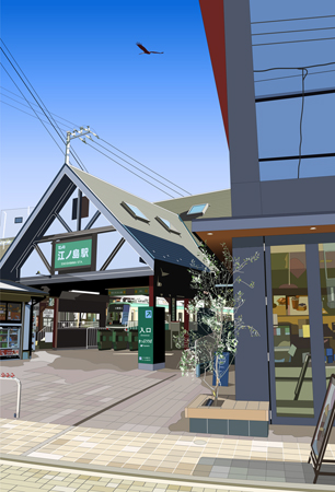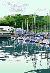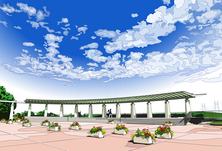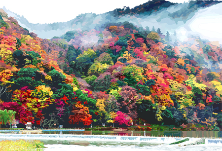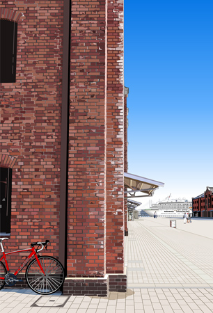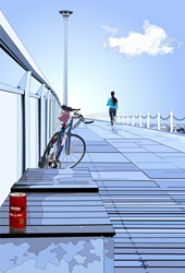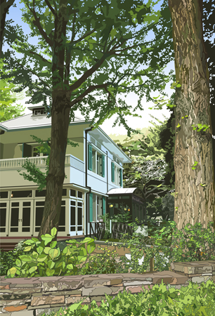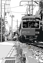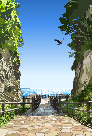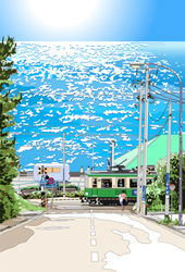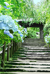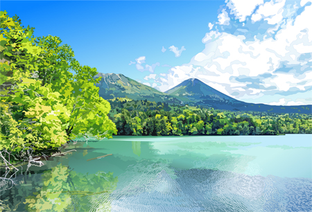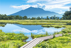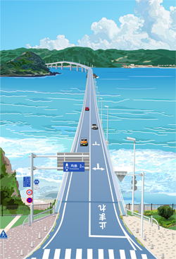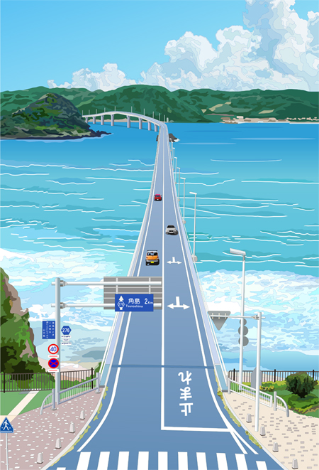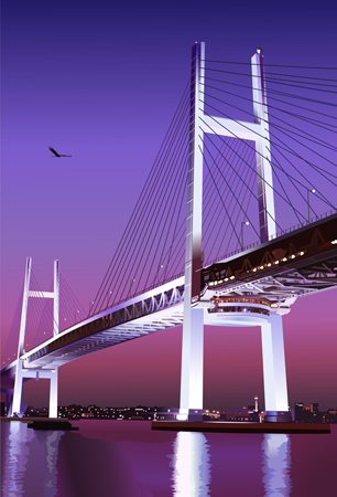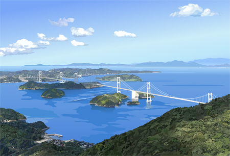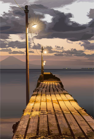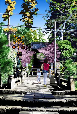 知人に提供頂いた画像を元に描いてみました。上高地の明神橋は清流梓川に架かる美しい吊り橋です。目の前に明神岳の絶景が広がります。