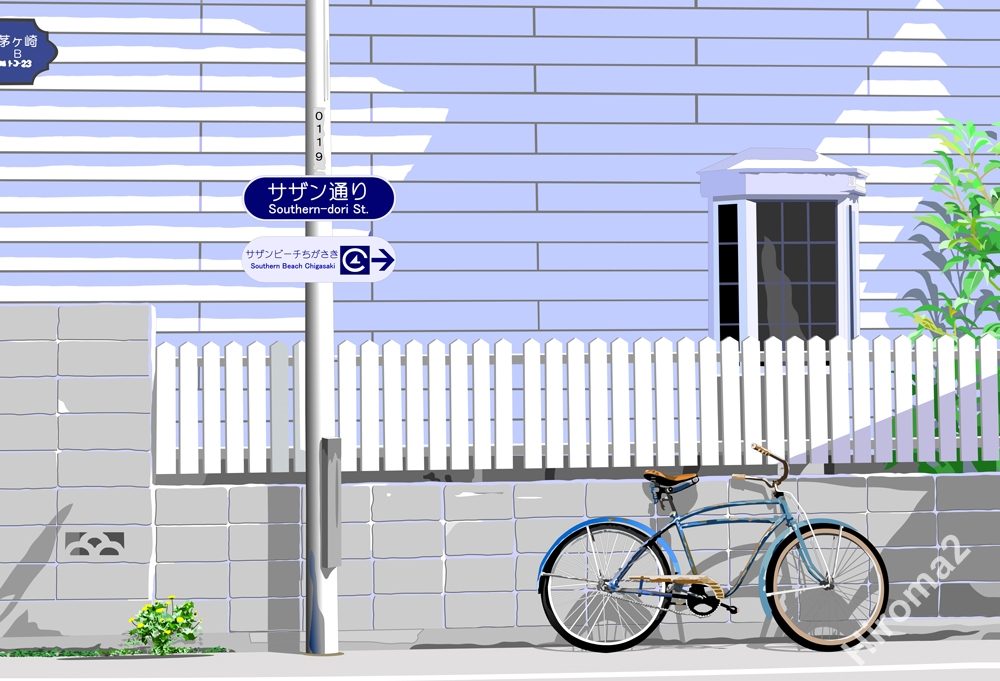 茅ヶ崎駅からサザンビーチまでの途中に"サザン通り"の看板を見つけました。いかにも湘南らしいです。