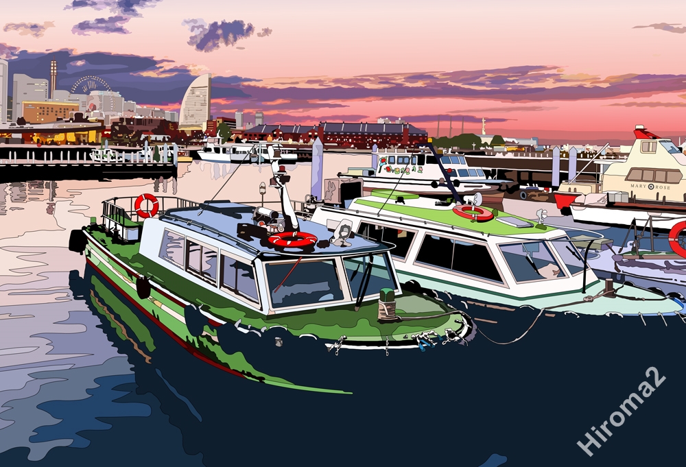 ”みなとみらい”の"象の鼻パーク"。少し古びた船舶が夕暮れの港町に似合います。