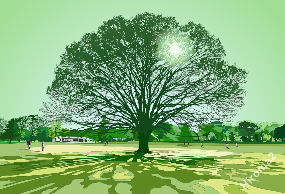 公園の広さに驚きです(東京ドーム39個分)。広い原っぱの真ん中にそびえる”ケヤキの木”に圧倒されます。