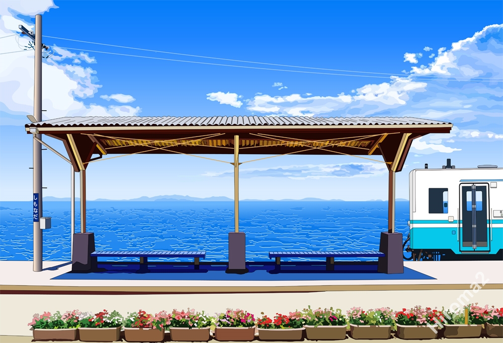 愛媛県伊予市にある日本一海に近い駅 下灘駅。 映画や雑誌、CMにも度々登場しています。