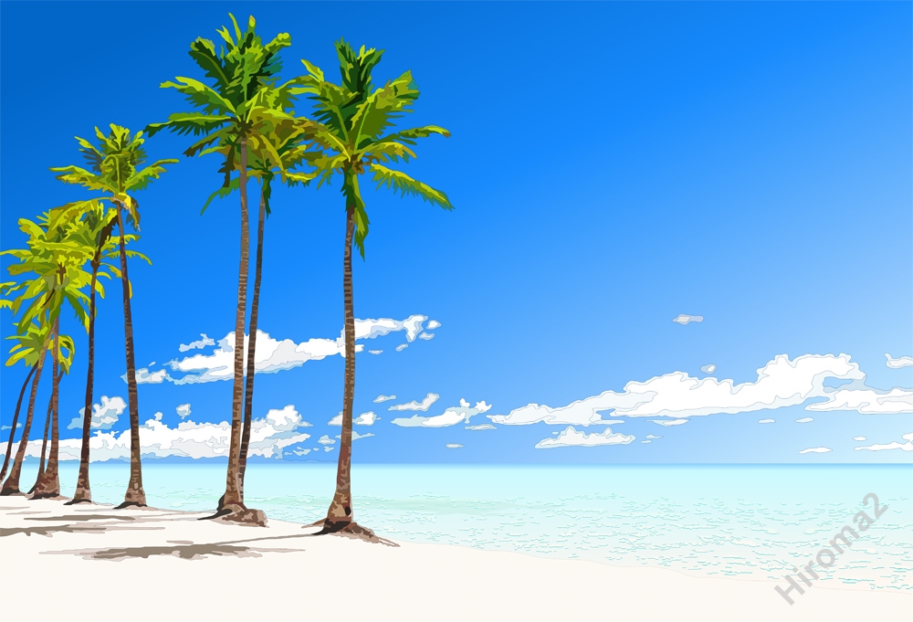 白い砂浜と穏やかな海。そこにヤシの木があれば・・。とても落ち着く風景です。