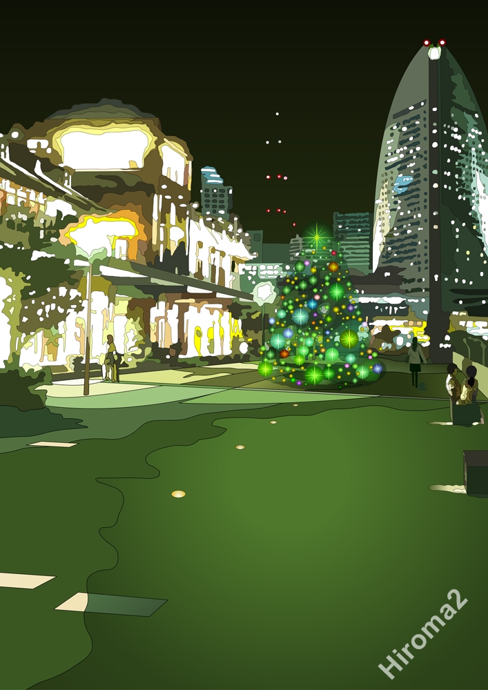 赤レンガ倉庫の近くに最近オープンした「マリン&ウォーク」。インターコンチネンタルを背景にスマホで1枚撮影してみた。