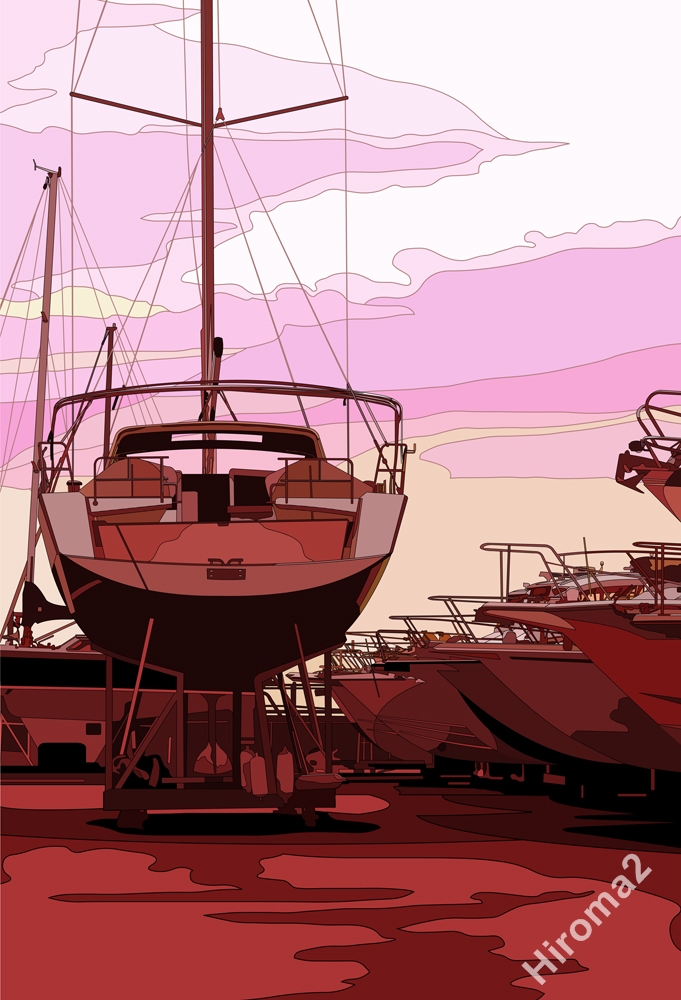 葉山マリーナのヨットハーバーを金網ごしに撮影。夏になると湘南の海がヨットで埋まります。
