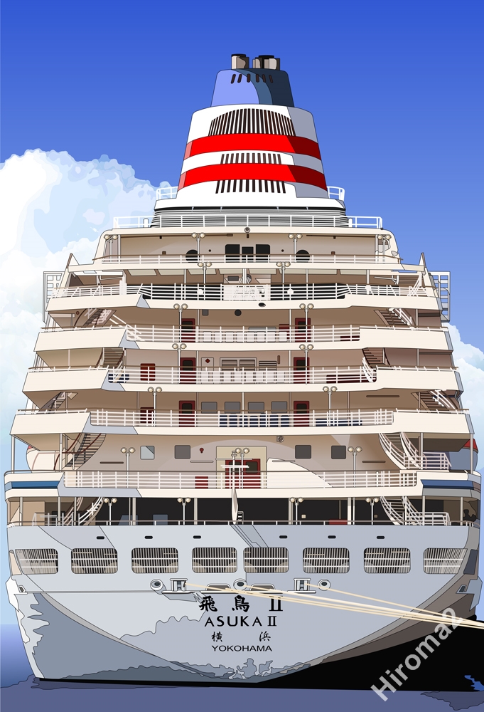 日本が誇る大型客船の船尾を象の鼻から1枚。全長241メートルもあるそうです。