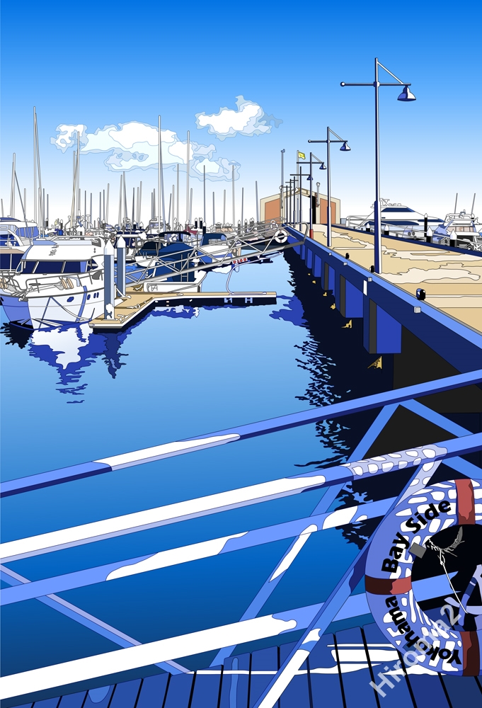 横浜ベイサイドに並ぶ沢山のヨット。真っ直ぐに伸びた桟橋が良い感じでした。