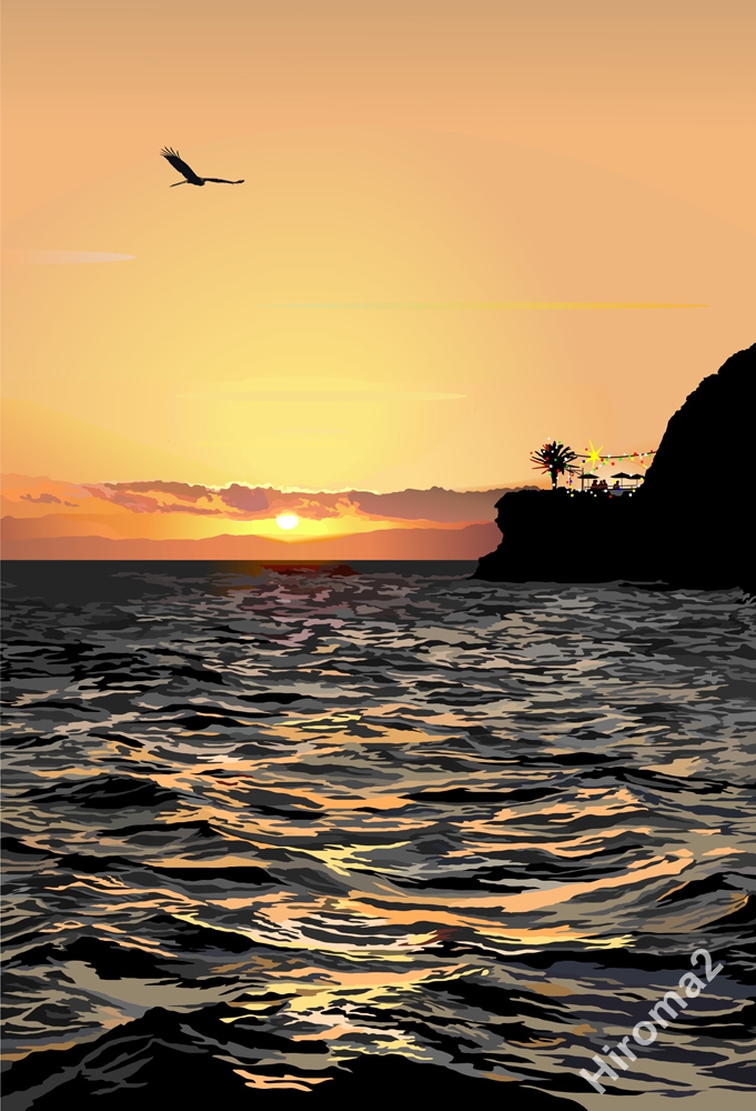 「不如帰(ほととぎす)の碑」が目の前に見える小さな展望台から綺麗な夕日が・・。