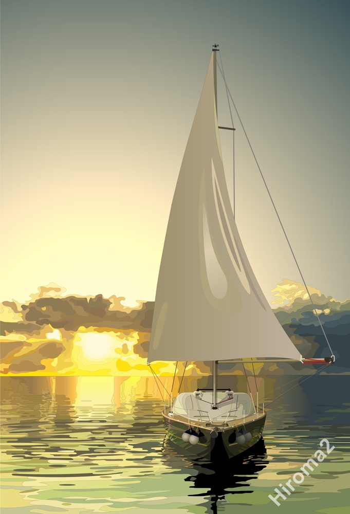 静かな海に漂うヨット。とても落ち着いた風景ですね。