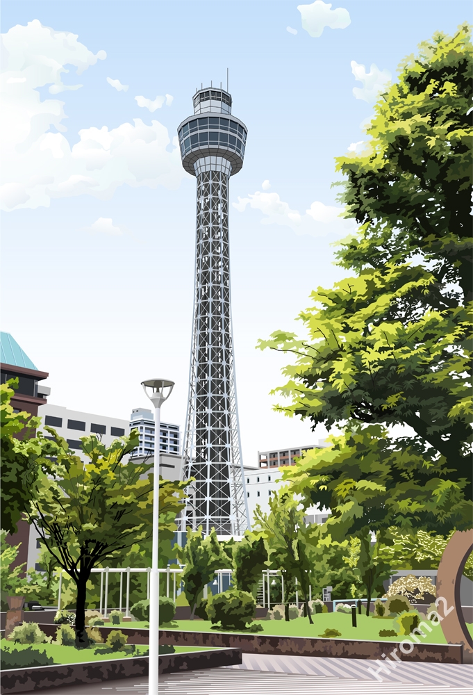 横浜港のシンボルとなっているマリンタワー。灯台を意識したデザインのようです。