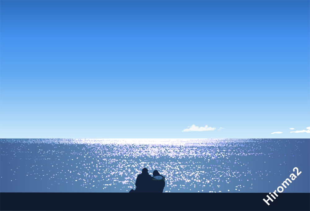 七里ヶ浜から望む海はとても穏やかで、地平線から反射する光が眩しいです。